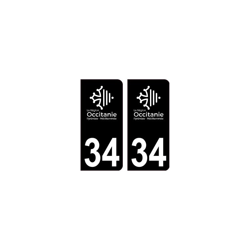 Autocollants Stickers aux dimensions des plaques d'immatriculation du département 34 Occitanie et conforme aux dimensions des plaques d'immatriculations d'origines pour voiture auto.