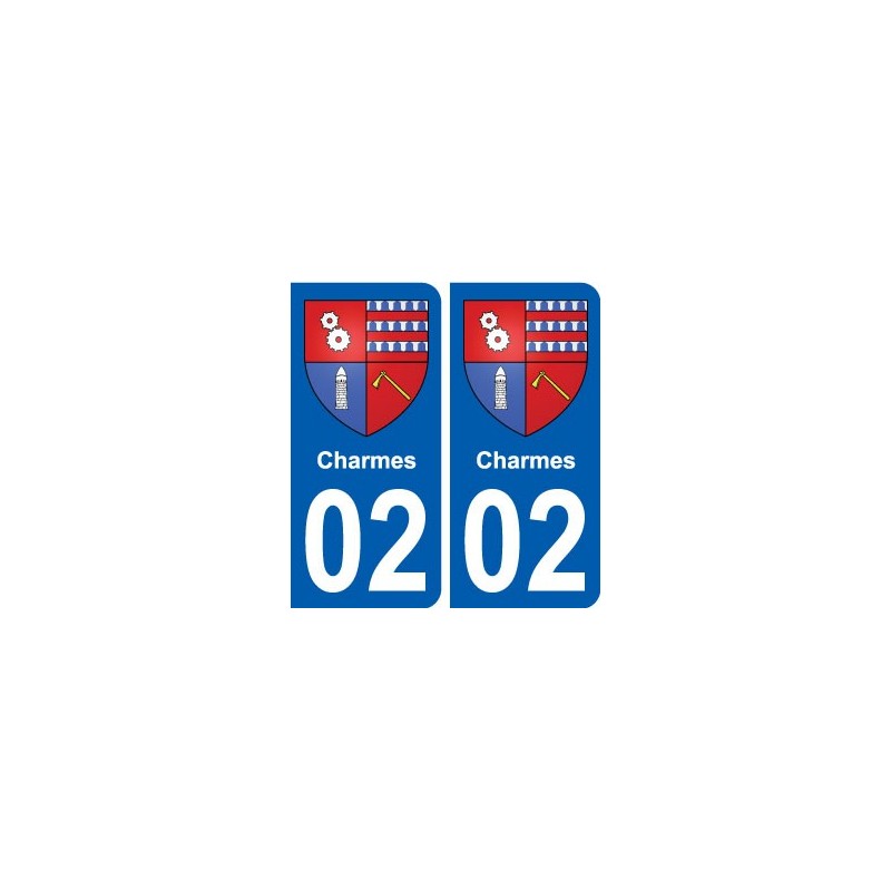 Autocollant plaque immatriculation blason département 02 Charmes ville