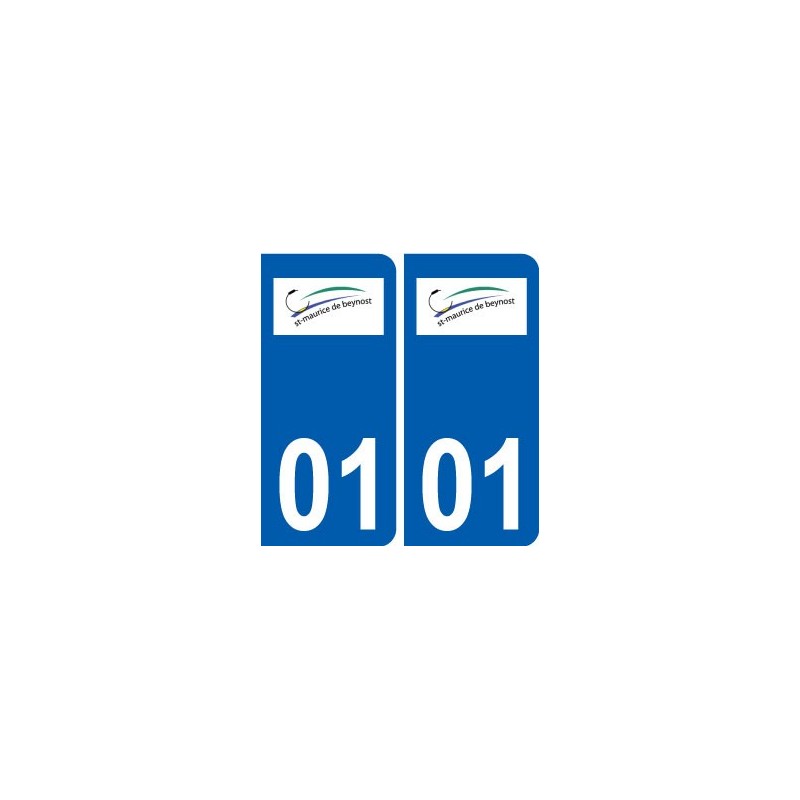 Autocollants Stickers aux dimensions des plaques d'immatriculation du département 01 Saint-Maurice-de-Beynost logo ville conforme aux dimensions des plaques d'immatriculations d'origines pour voiture auto.