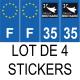Lot de 4 autocollants bleu 35 ILLE-ET-VILAINE Bretagne - F Europe nouvelles régions plaque immatriculation auto voiture sticker