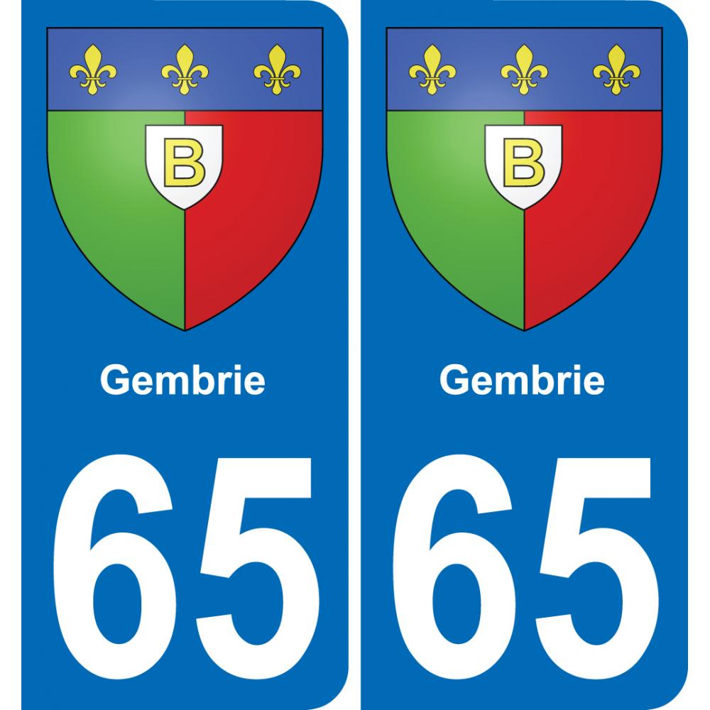 Autocollant plaque immatriculation auto blason département 65 Gembrie ville sticker