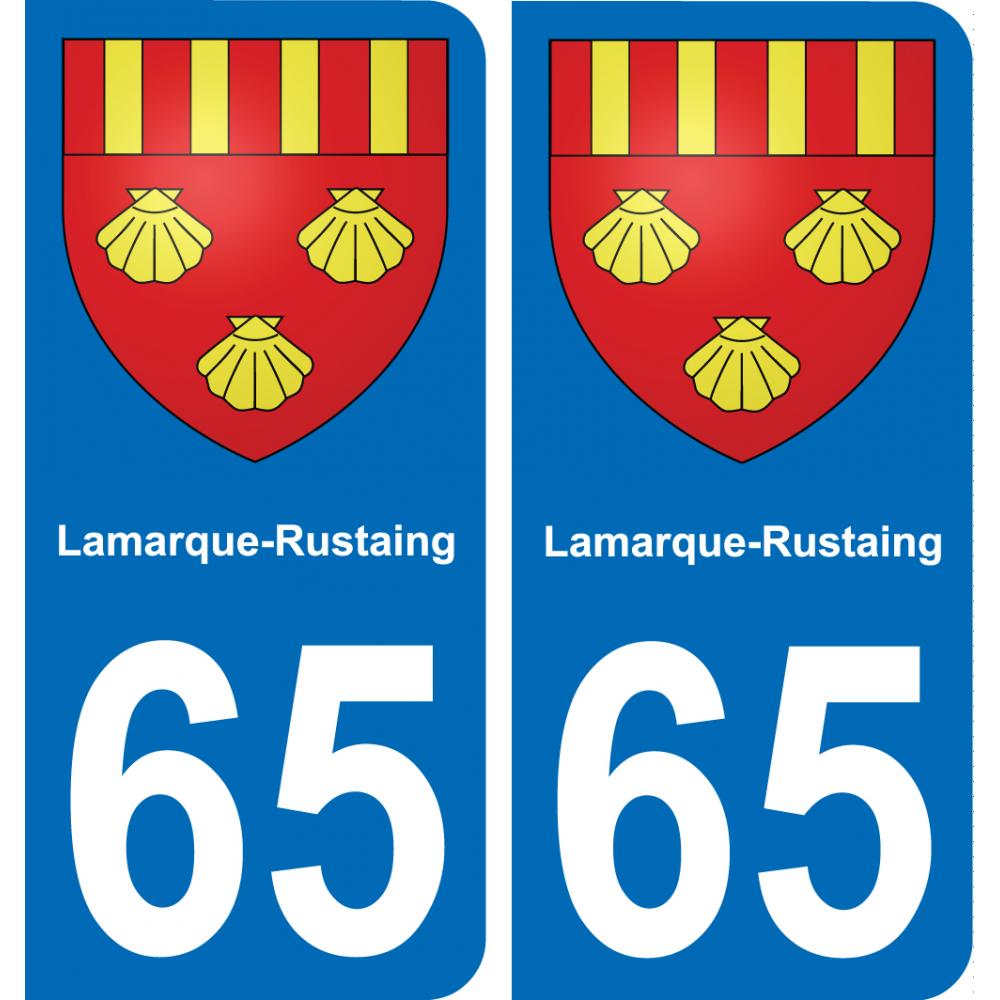 Autocollants Stickers aux dimensions des plaques d'immatriculation du département 65 Lamarque-Rustaing ville et conforme aux dimensions des plaques d'immatriculations d'origines pour voiture auto.