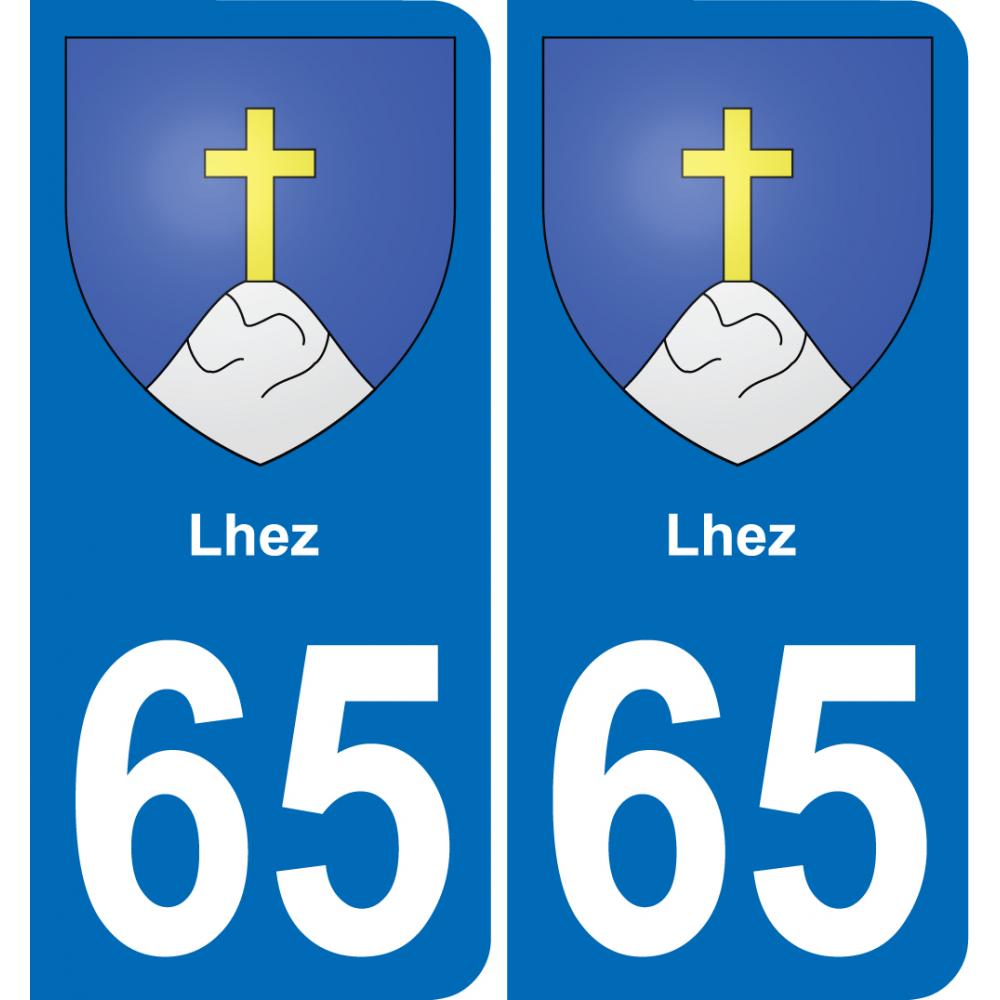Autocollant plaque immatriculation auto blason département 65 Lhez ville sticker