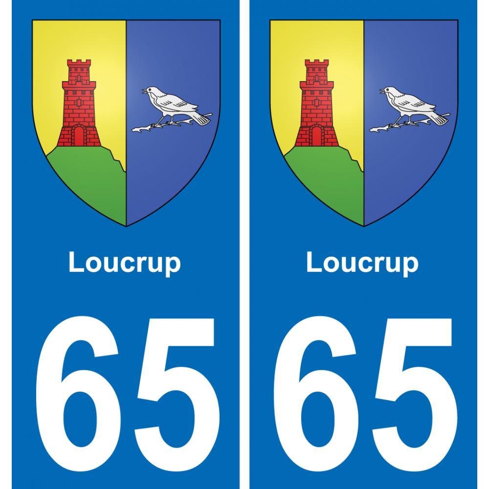Autocollant plaque immatriculation auto blason département 65 Loucrup ville sticker