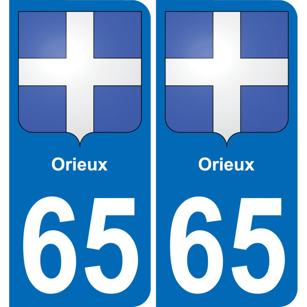 Autocollant plaque immatriculation auto blason département 65 Orieux ville sticker