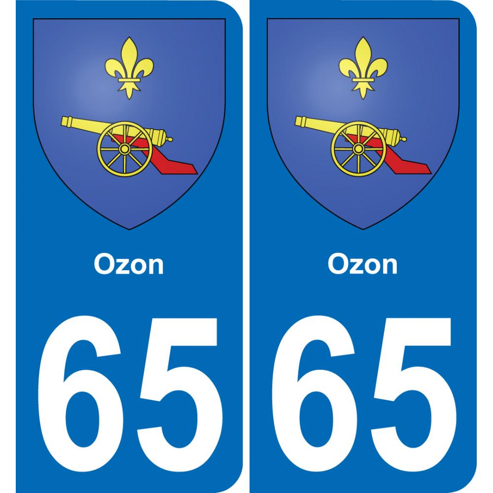 Autocollant plaque immatriculation auto blason département 65 Ozon ville sticker