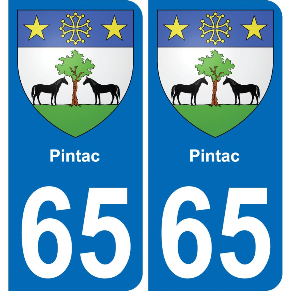Autocollants Stickers aux dimensions des plaques d'immatriculation du département 65 Pintac ville et conforme aux dimensions des plaques d'immatriculations d'origines pour voiture auto.