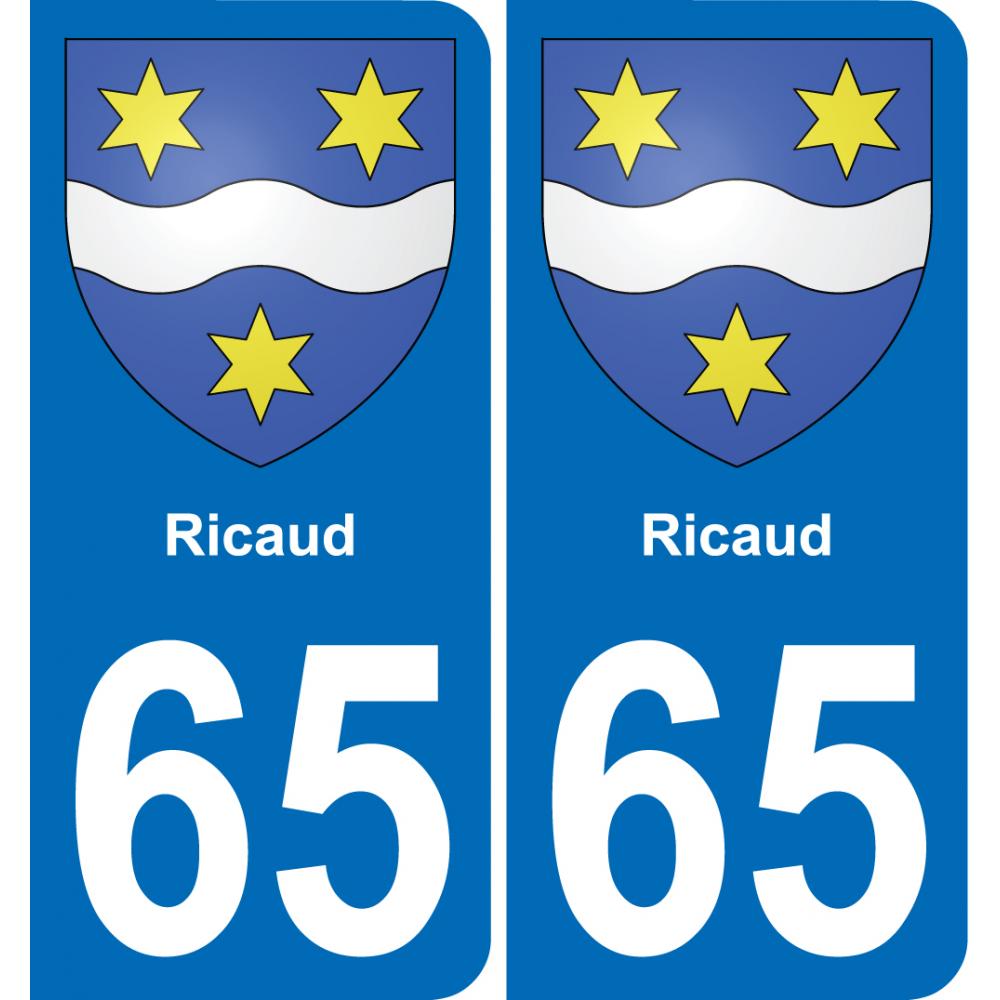 Autocollants Stickers aux dimensions des plaques d'immatriculation du département 65 Ricaud ville et conforme aux dimensions des plaques d'immatriculations d'origines pour voiture auto.