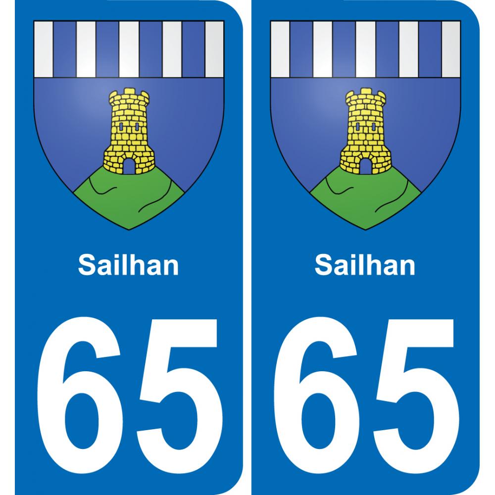 Autocollant plaque immatriculation auto blason département 65 Sailhan ville sticker