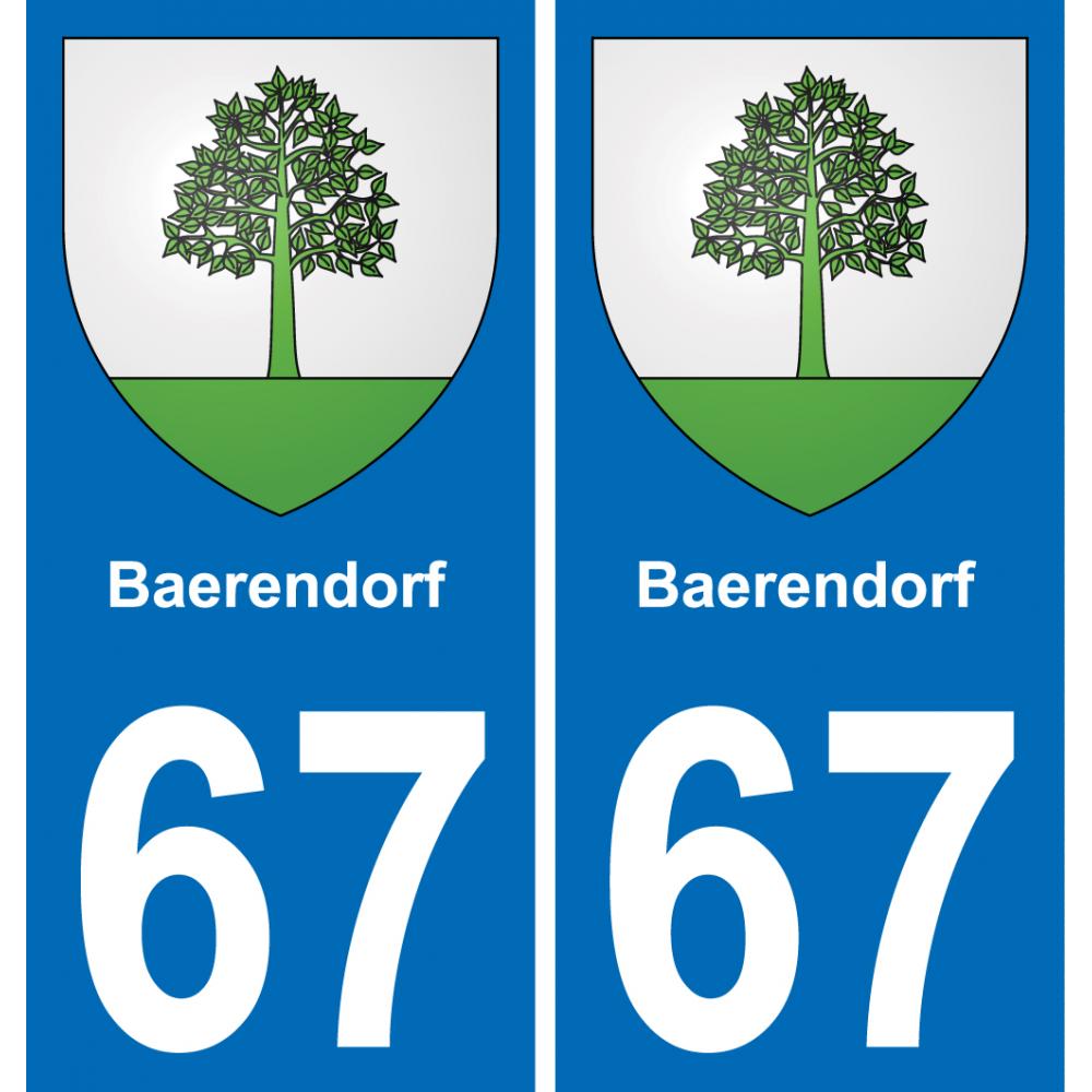 Autocollant plaque immatriculation auto blason département 67 Baerendorf ville sticker