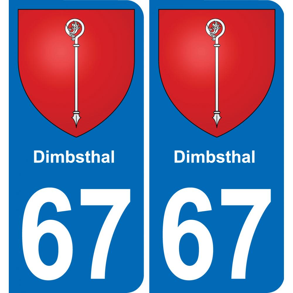 Autocollant plaque immatriculation auto blason département 67 Dimbsthal ville sticker