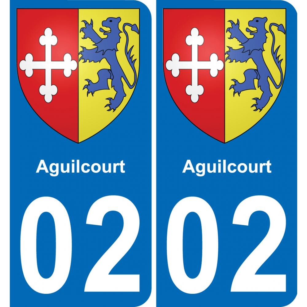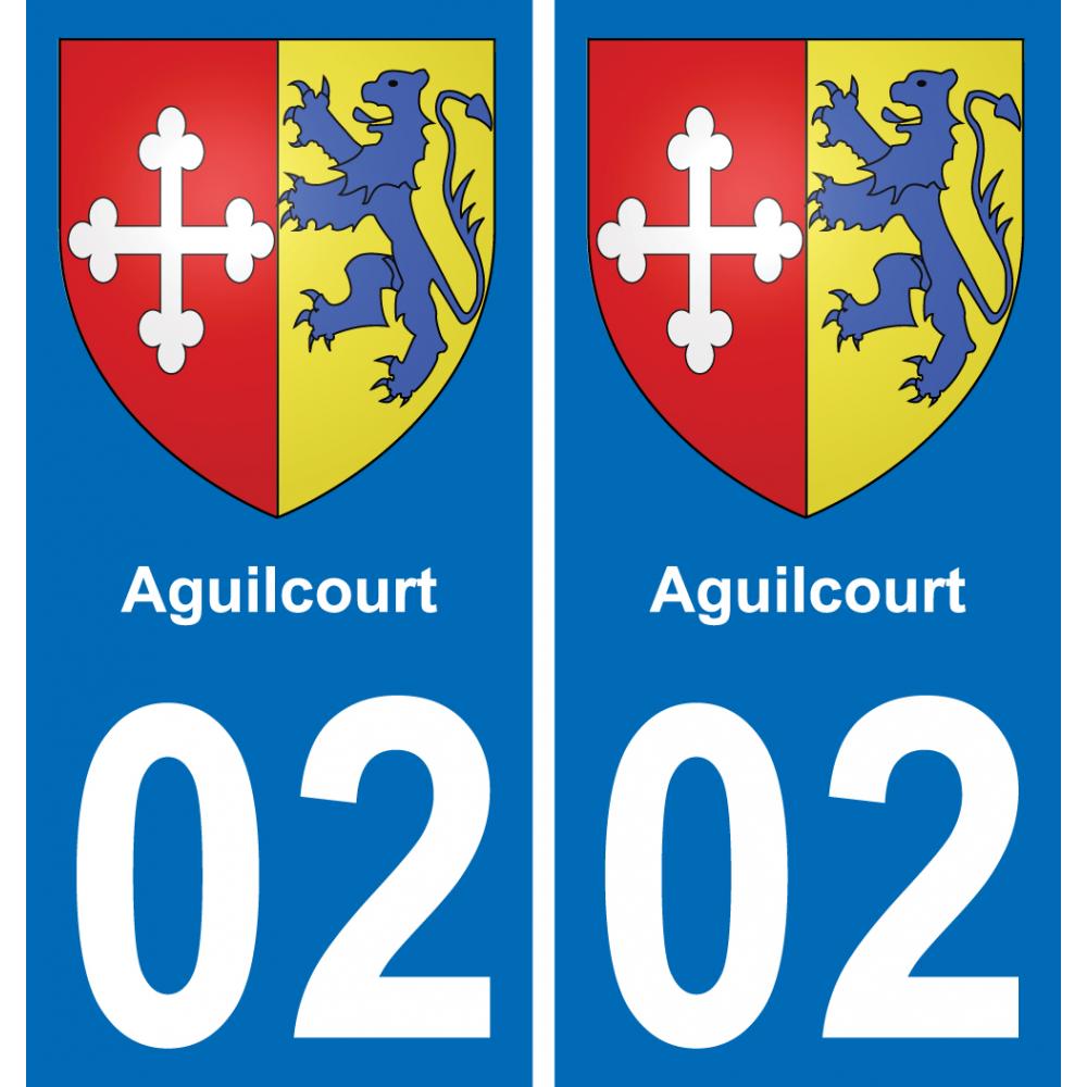 Autocollant plaque immatriculation auto blason département 02 Aguilcourt ville sticker