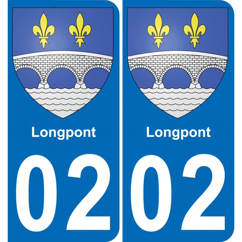 Autocollant plaque immatriculation auto blason département 02 Longpont ville sticker