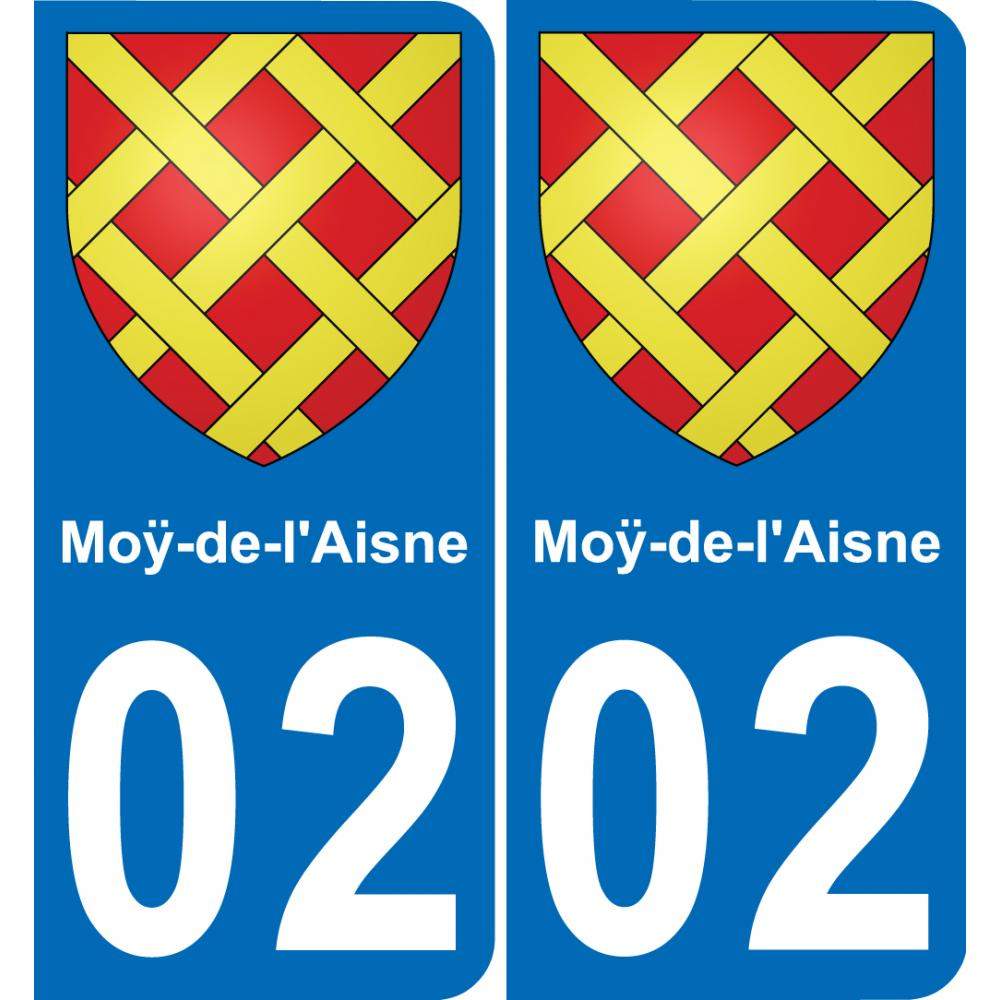 Autocollant plaque immatriculation auto blason département 02 Moÿ-de-l'Aisne ville sticker