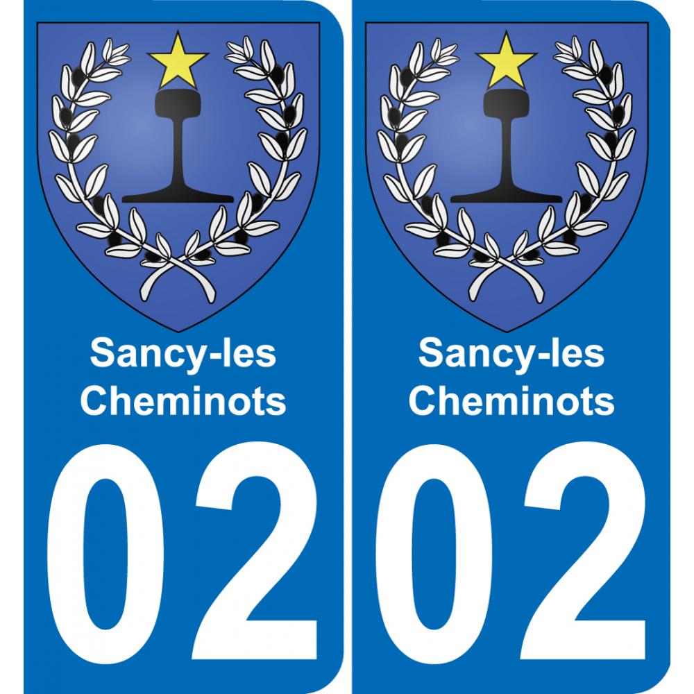 Autocollant plaque immatriculation auto blason département 02 Sancy-les-Cheminots ville sticker