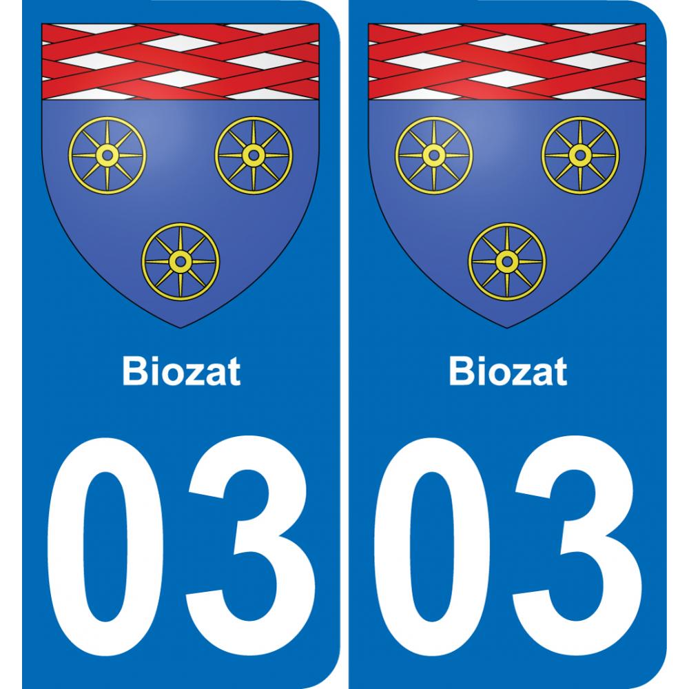 Autocollant plaque immatriculation auto blason département 03 Biozat ville sticker