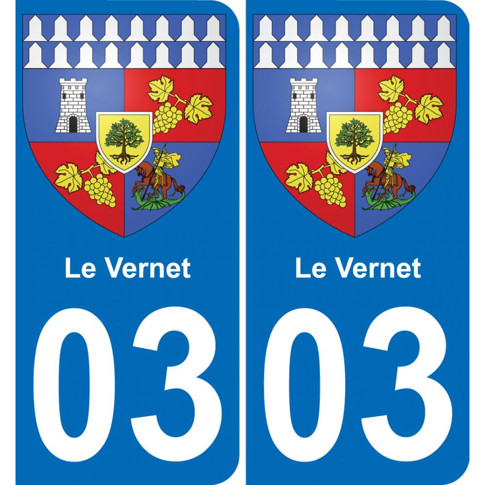 Autocollant plaque immatriculation auto blason département 03 Le Vernet ville sticker