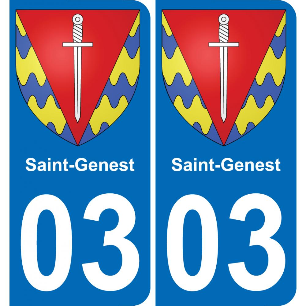 Autocollant plaque immatriculation auto blason département 03 Saint-Genest ville sticker