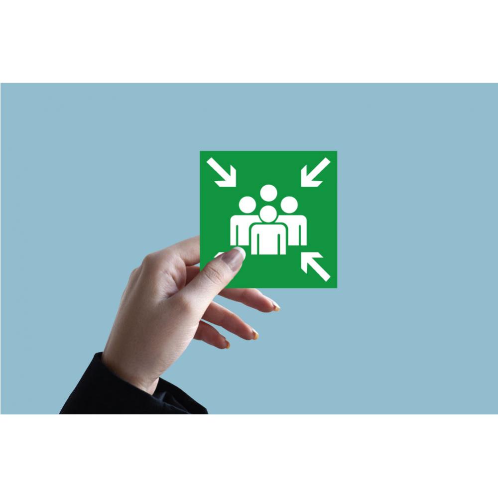 Indication point de rassemblement information alarme zone sécurité évacuation autocollant sticker logo646