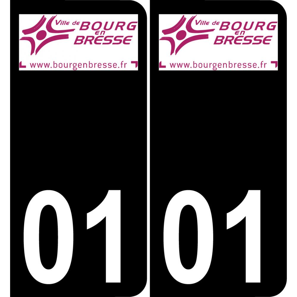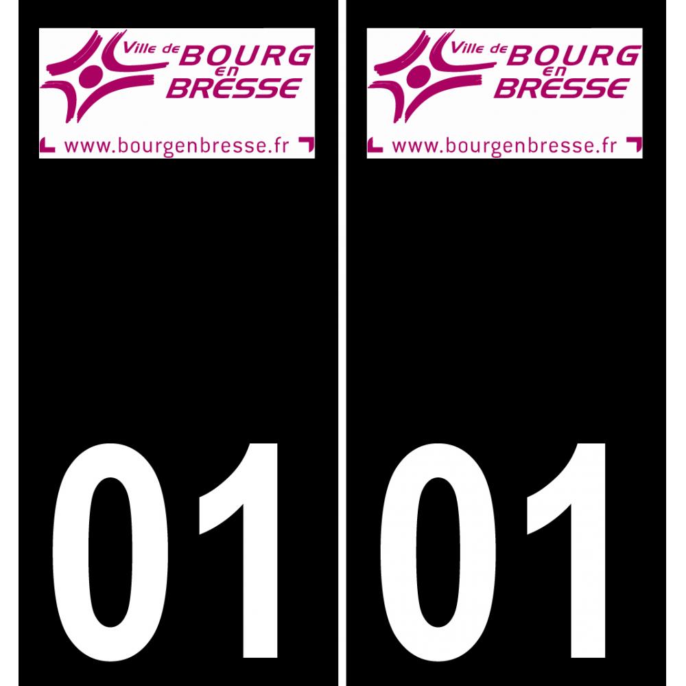 Autocollants Stickers aux dimensions des plaques d'immatriculation du département 01 ville logo Bourg-en-Bresse et conforme aux dimensions des plaques d'immatriculations d'origines pour voiture auto.