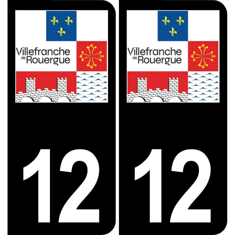 Autocollant plaque immatriculation blason département 12 Villefranche-de-Rouergue logo ville sticker auto