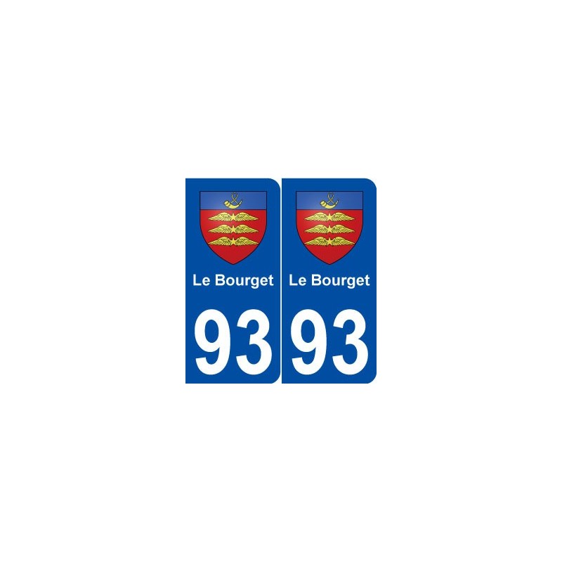 Autocollant plaque immatriculation département 93 Le Bourget blason stickers ville
