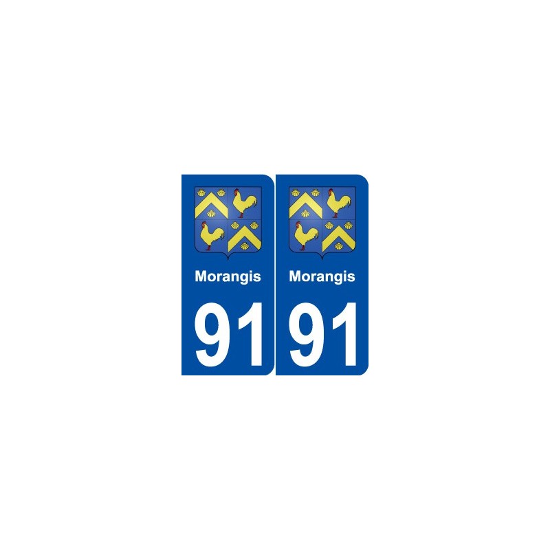 Autocollant plaque immatriculation département 91 Morangis blason stickers ville