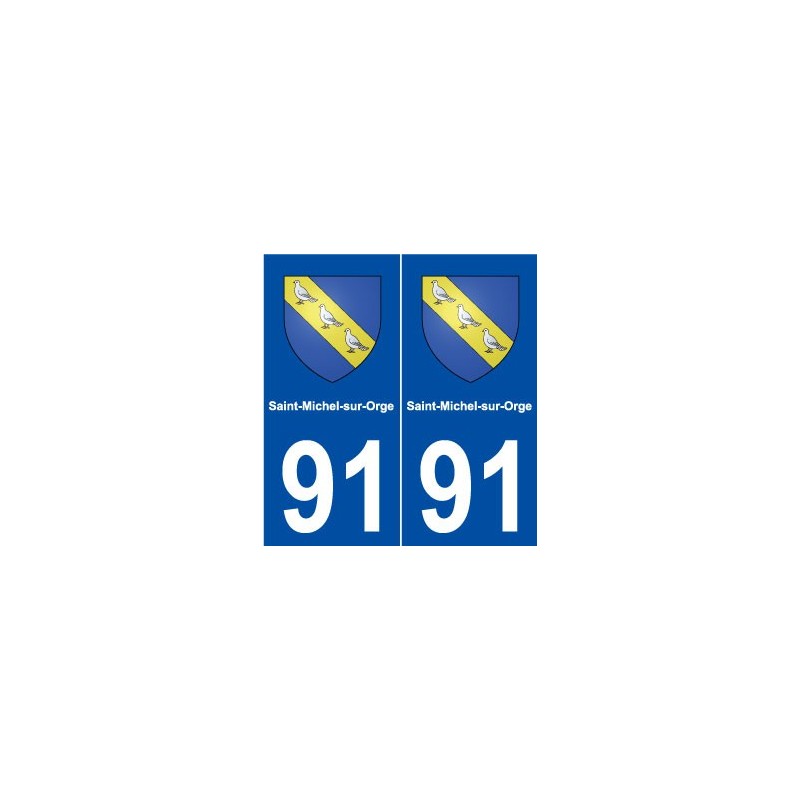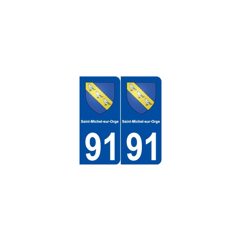 Autocollant plaque immatriculation département 91 Saint-Michel-sur-Orge blason stickers ville