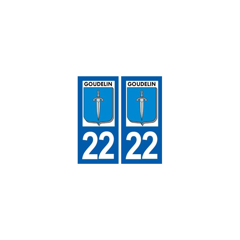 Autocollant plaque immatriculation logo département 22 Goudelin logo stickers ville