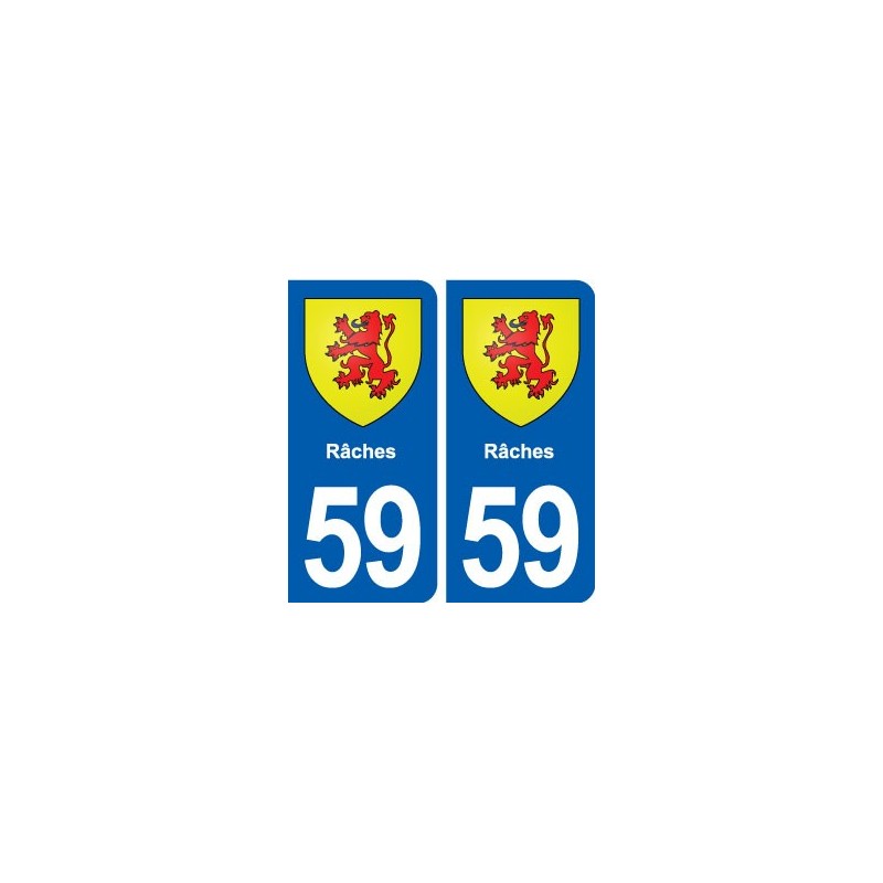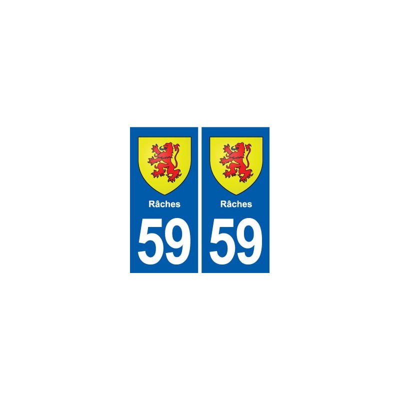 Autocollant plaque immatriculation département 59 Râches blason stickers ville