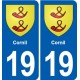 Sticker plaque immatriculation coat of arms department 19 Cornil coat of arms city sticker