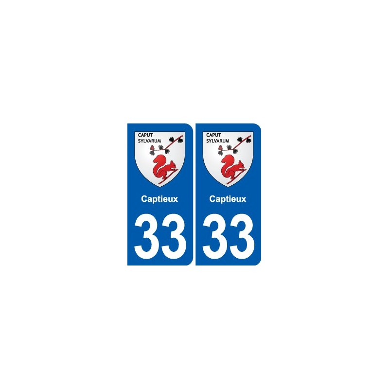 Sticker plaque immatriculation coat of arms department 33 Captieux coat of arms stickers city