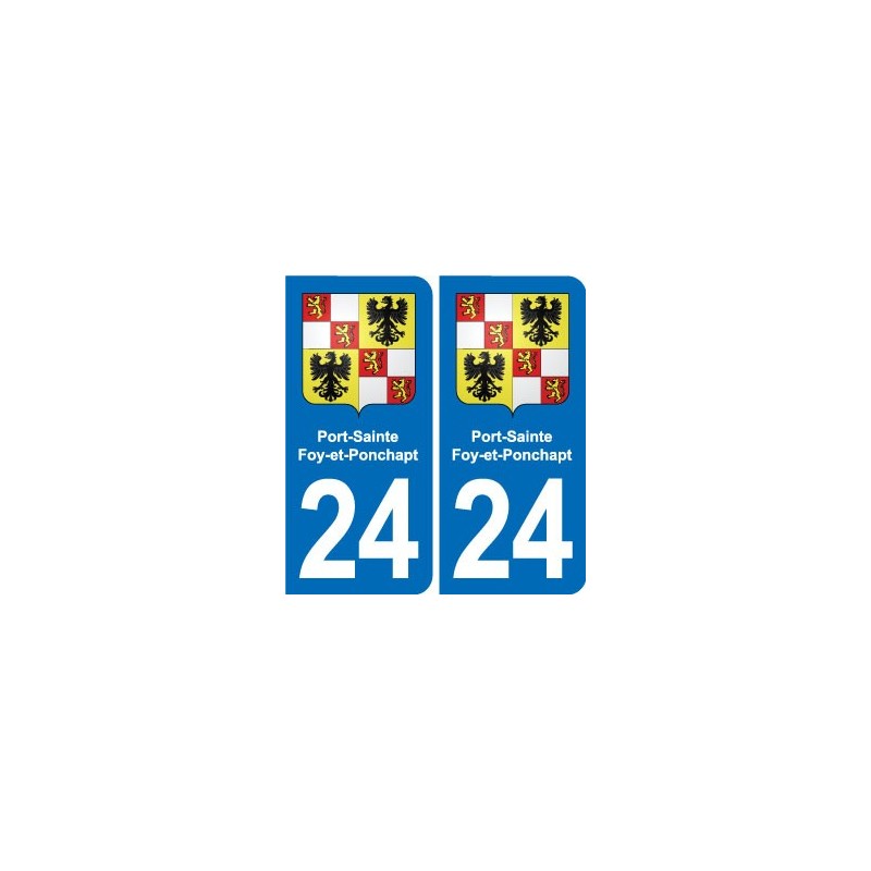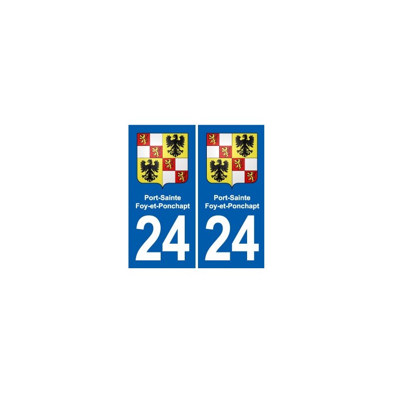 Sticker plaque immatriculation coat of arms department 24 Port-Sainte-Foy-et-Ponchapt coat of arms stickers city