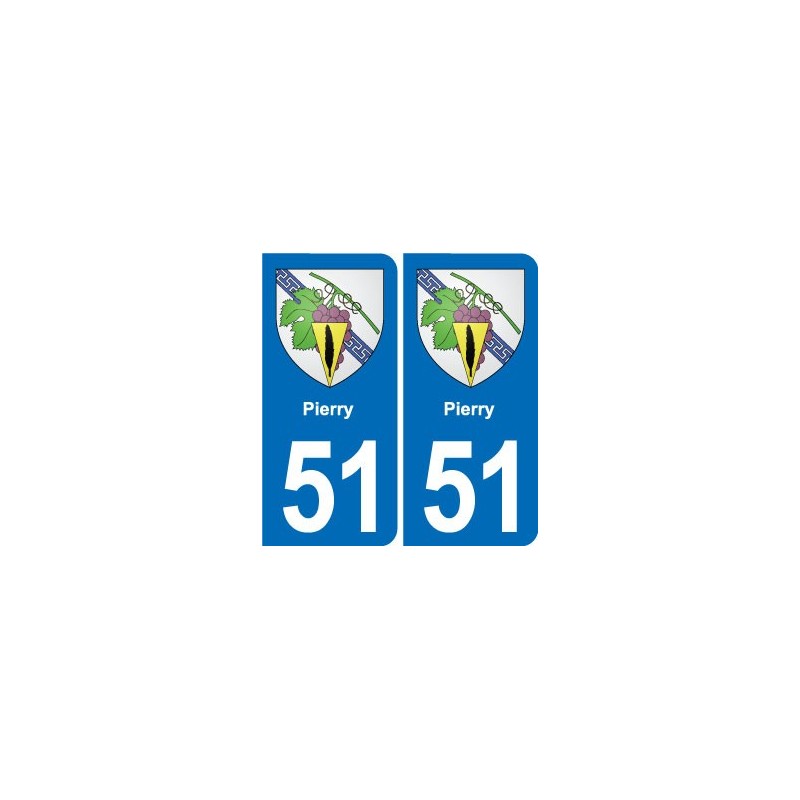 Sticker plaque immatriculation department 51 Pierry coat of arms stickers city