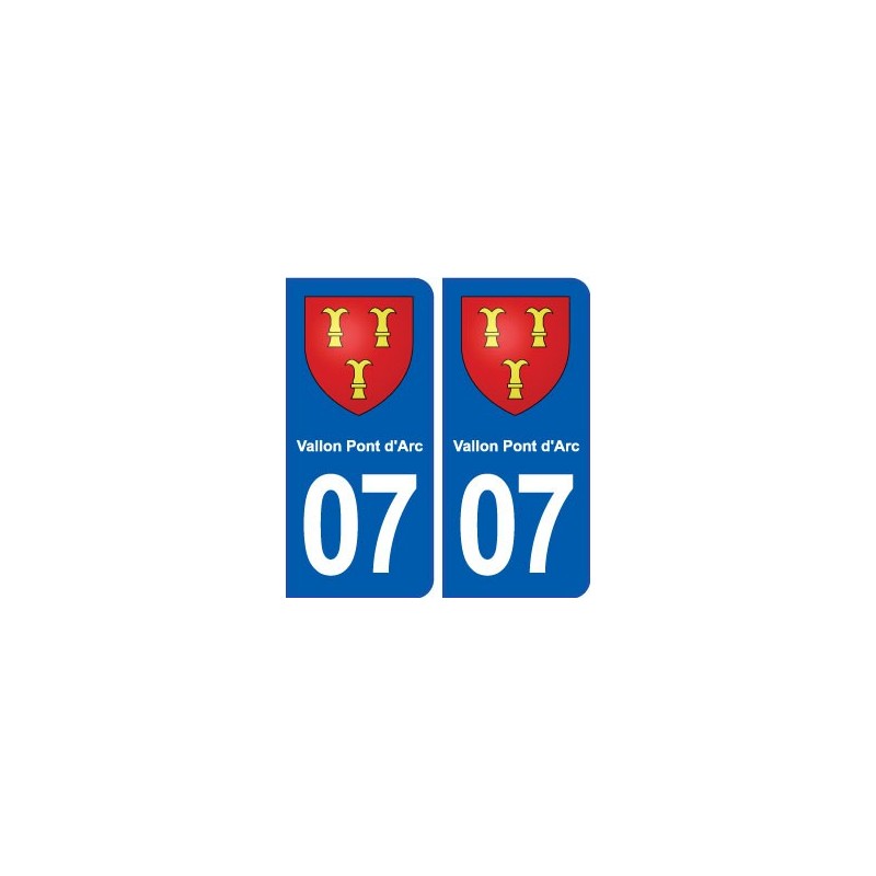 Sticker plaque immatriculation coat of arms department 07 Vallon-Pont-d'arc coat of arms stickers city