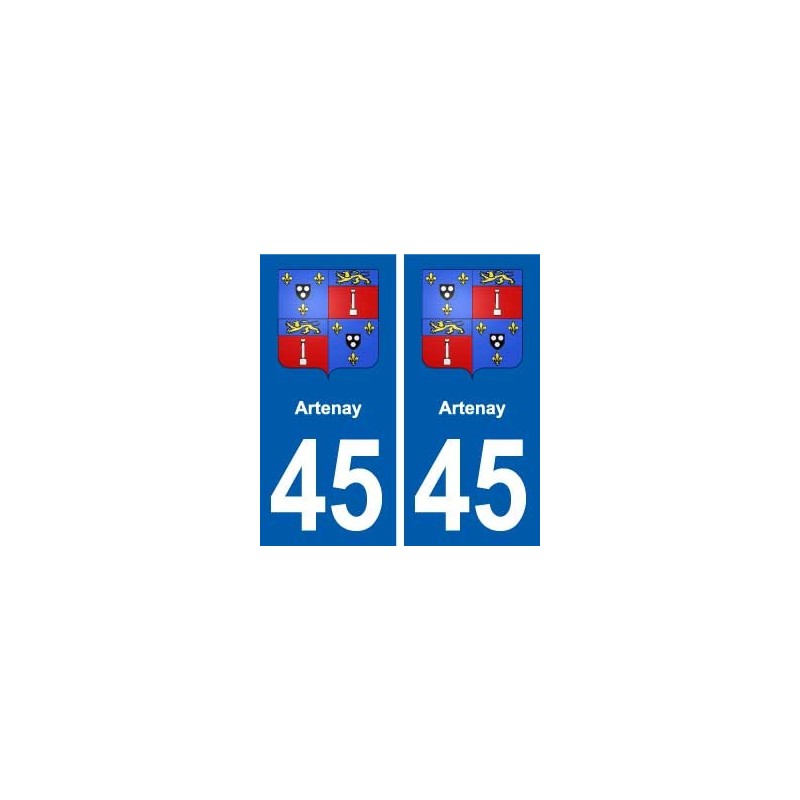 Stickers Stickers the size of license plates to the department 45 Artenay coat of arms official and conform to the dimensions of the license plates of origins for auto car.