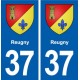 Sticker plaque immatriculation coat of arms department 37 Reugny coat of arms city stickers