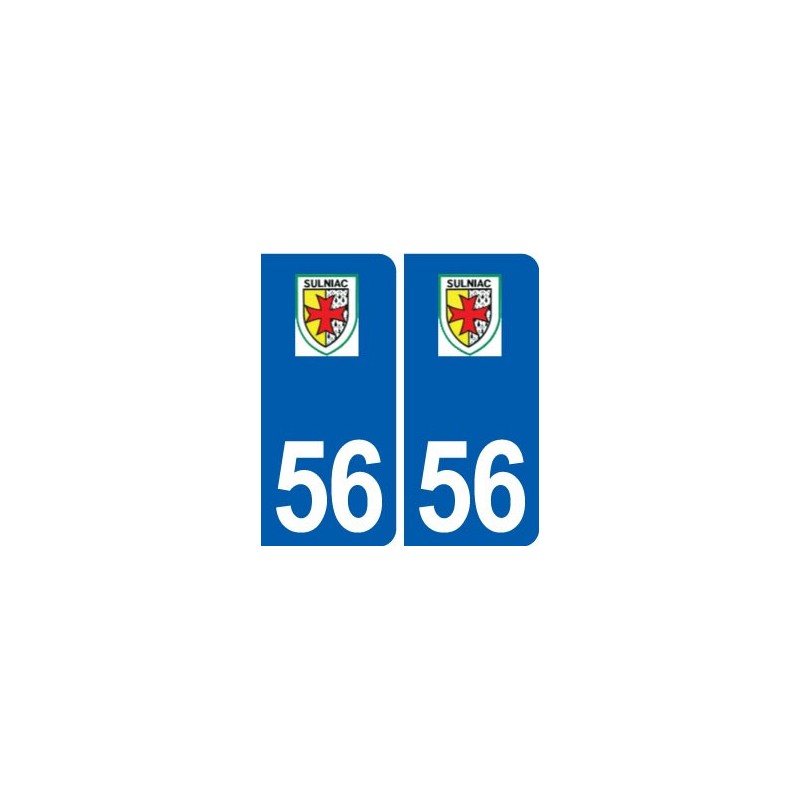 Sticker plaque immatriculation department 56 Sulniac logo stickers city