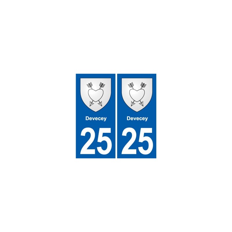 Adesivi Adesivi le dimensioni delle targhe per il dipartimentoVenticinque Devecey stemma la città è conforme alle dimensioni delle targhe di origine per auto.