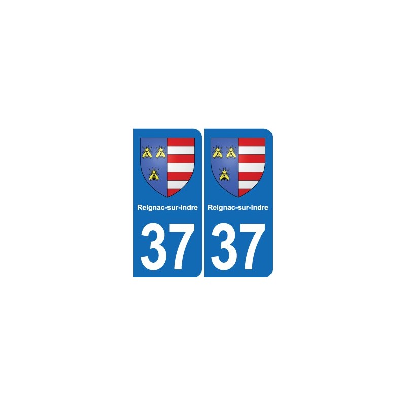 Autocollant plaque immatriculation blason département 37 Reignac-sur-Indre blason ville stickers