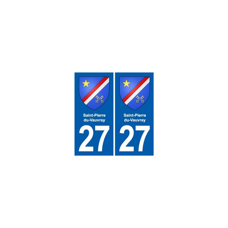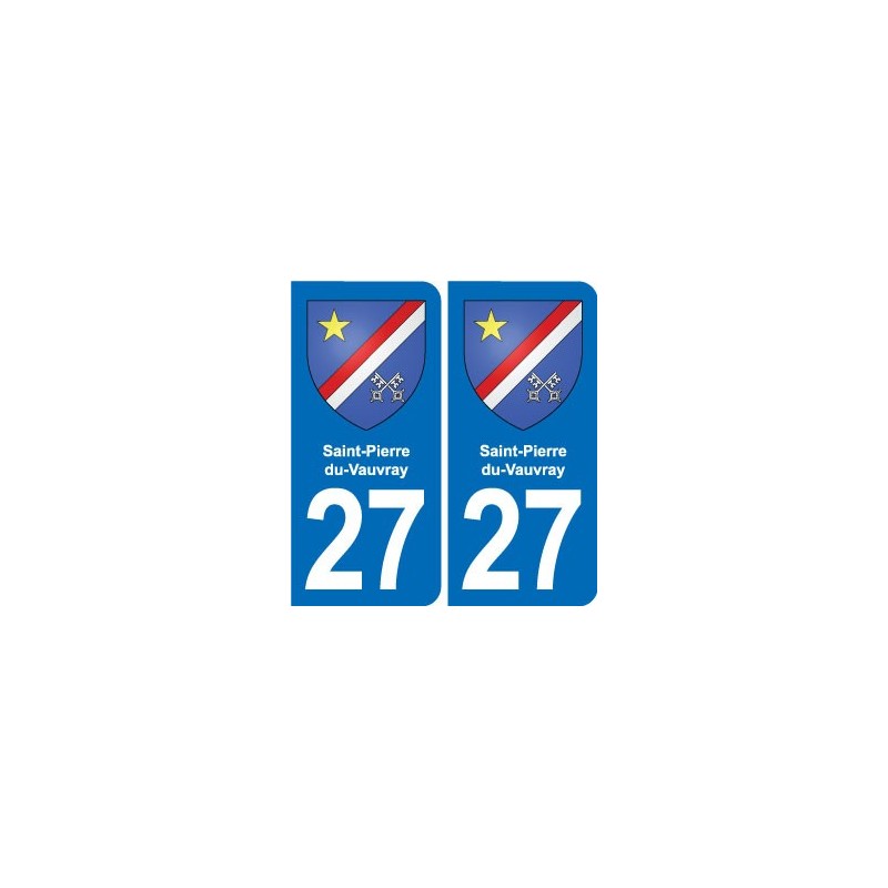 Autocollants Stickers aux dimensions des plaques d'immatriculation du département 27 Saint-Pierre-du-Vauvray blason ville conforme aux dimensions des plaques d'immatriculations d'origines pour voiture auto.
