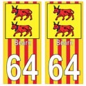 Autocollant plaque immatriculation blason département 64 Béarn...
