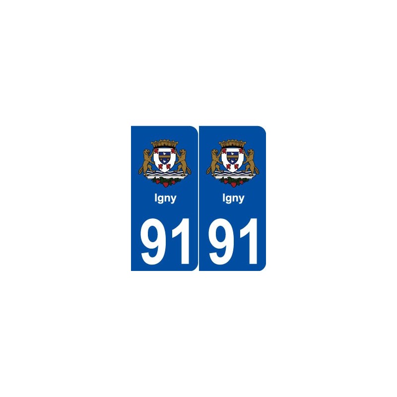 Autocollant plaque immatriculation département 91 Igny blason stickers ville