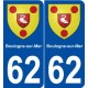 Autocollant plaque immatriculation 62 Boulogne-sur-Mer blason strickers ville