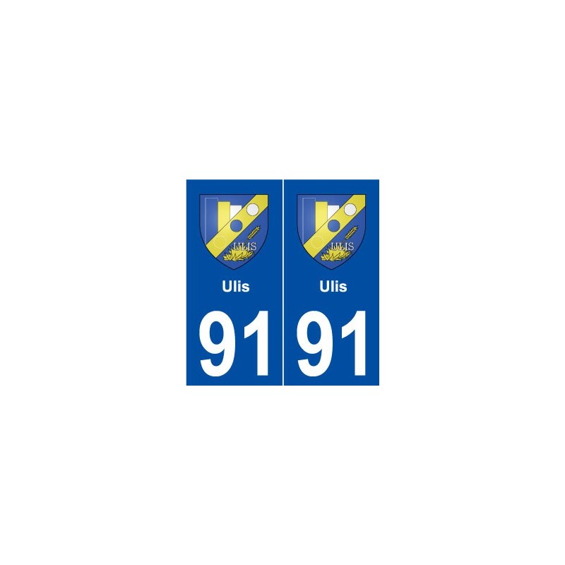 Autocollant plaque immatriculation département 91 Ulis blason stickers ville