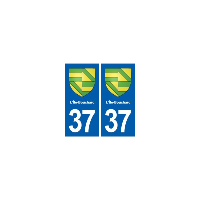 Autocollant plaque immatriculation blason département 37 L'Île-Bouchard blason ville stickers