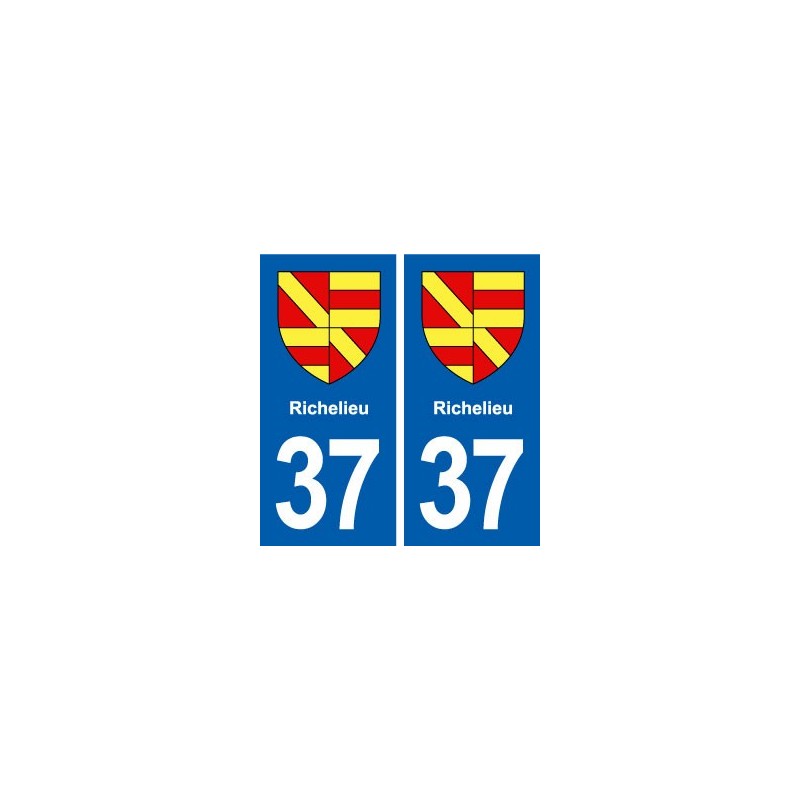Autocollant plaque immatriculation blason département 37 Richelieu blason ville stickers