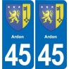45 Loiret autocollant plaque immatriculation...