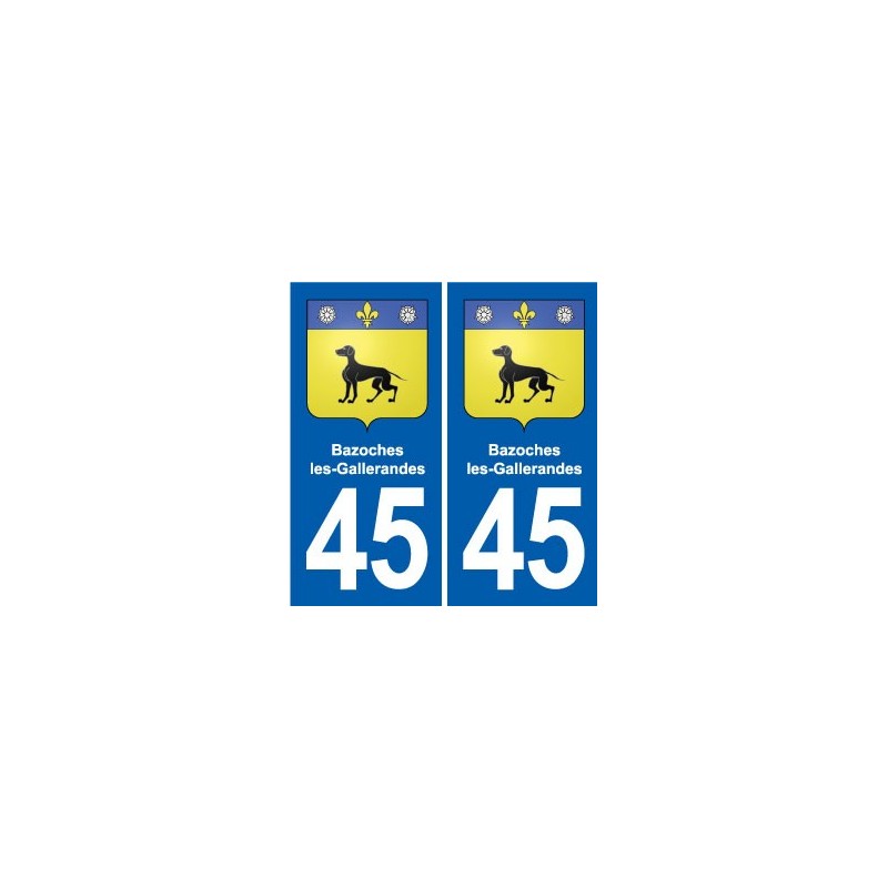 Autocollant plaque immatriculation blason département 45 Bazoches-les-Gallerandes ville blason