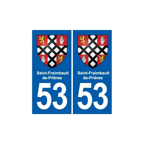 Autocollant plaque immatriculation blason département 53 Saint-Fraimbault-de-Prières blason stickers ville